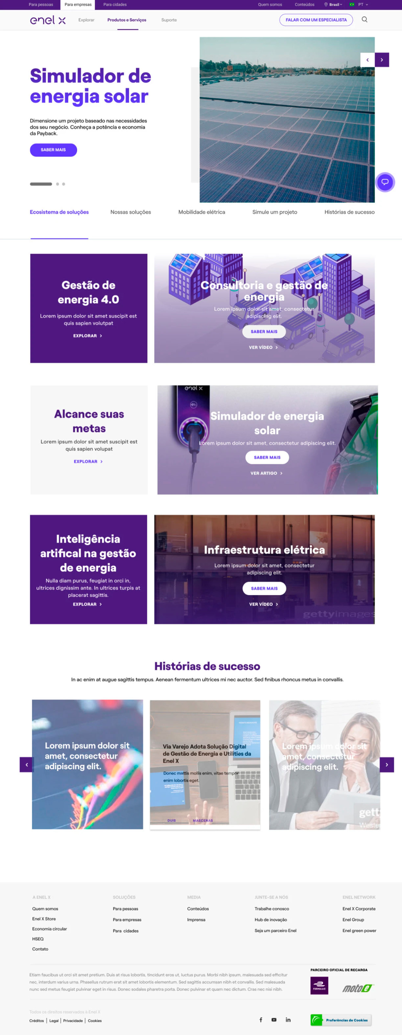 Reformulação do site Enel X BrasilA Enel é uma empresa que cuida de uma Linha de negócio dedicada ao desenvolvimento de produtos inovadores e soluções digitais